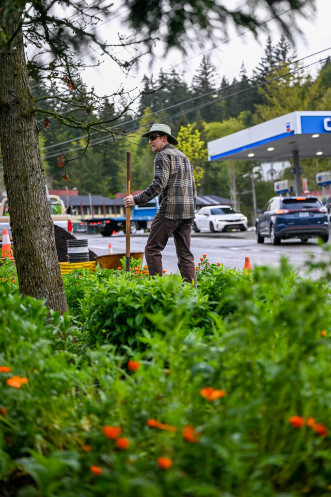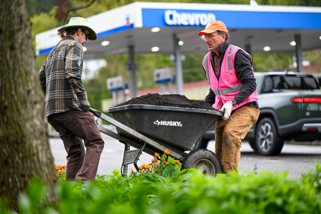Team Four focused on beautification at the overpass median. They amended the soil with a fresh layer of manure, tilled it in, and planted more than 20 new plants—including delphinium and asters—bringing new life and color to the space.